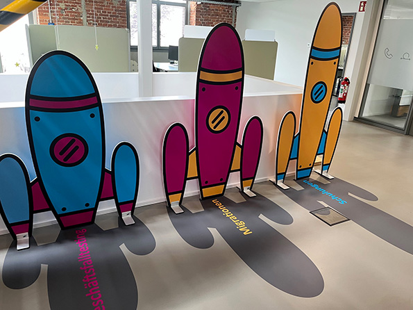 Von Hausschildern bis zu Pylonen, von Werbebannern bis zu Messesystemen – wir setzen Ihre Werbemaßnahmen perfekt in Szene. Egal, ob es um Veranstaltungen, Messen oder den täglichen Geschäftsbetrieb geht, wir helfen Ihren Aktionen auf die Sprünge!